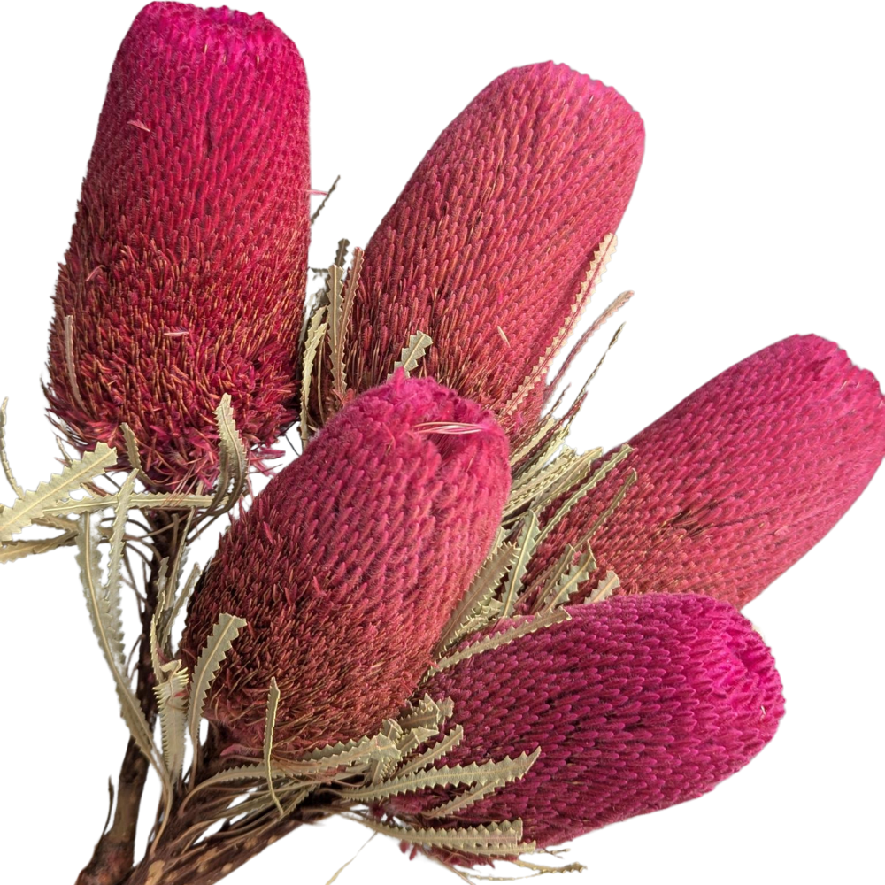 Buy Dried Banksia Hookeriana, 5 stems, 25cm, Hot Pink