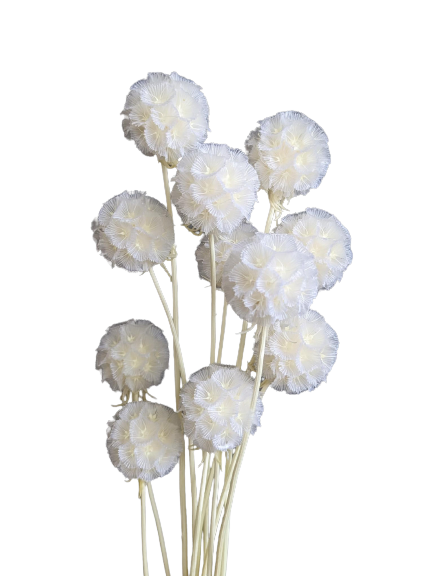 Preserved Scabiosa, also known as Pincushion Flower, includes 10 stems per bunch, approx. 30cm in length, in a soft White tone. Each bloom features a delicate, round-shaped head with a preserved finish—ideal for bouquets, DIY florals, wreaths, and mini domes.