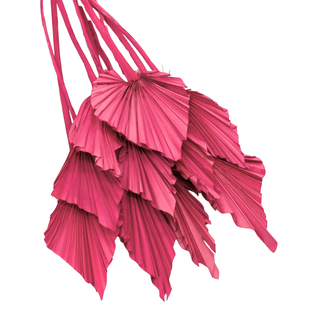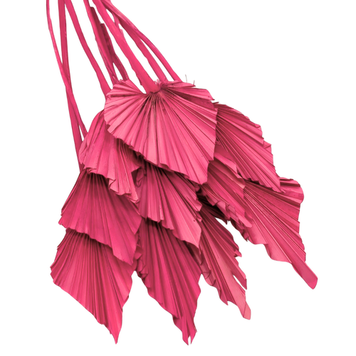 Dried Palm Spears include 10 stems, approx. 50cm in length, in a bold Hot Pink tone. Each spear is shaped from a dried palm leaf into a clean, fan-like silhouette—ideal for bouquets, backdrops, cake toppers, and DIY styling.