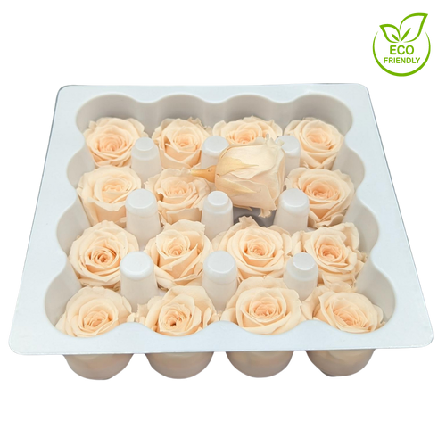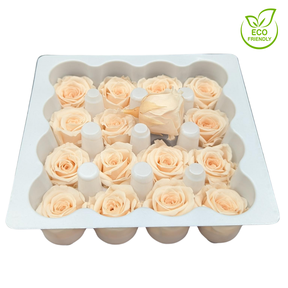 This pack contains 16 preserved spray rose blooms in a soft almond cream tone, each measuring approximately 23–27mm in diameter and height. Their petite size and neutral colour make them perfect for DIY floral and craft design, formal corsages and buttonholes, and wedding floral styling.