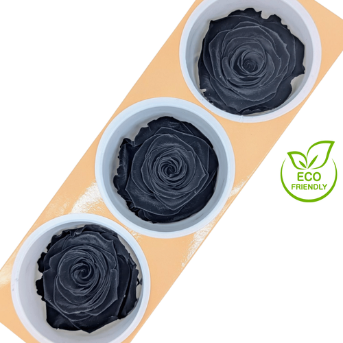Designed for weddings, formals, cake décor, and DIY floral and craft design, these preserved roses feature dramatic black blooms with a diameter of approximately 6cm and a height of 5–6cm. Each pack contains 6 blooms, each with a short stem: 0.5cm, making them suitable for wiring or to attach to preserved stems.