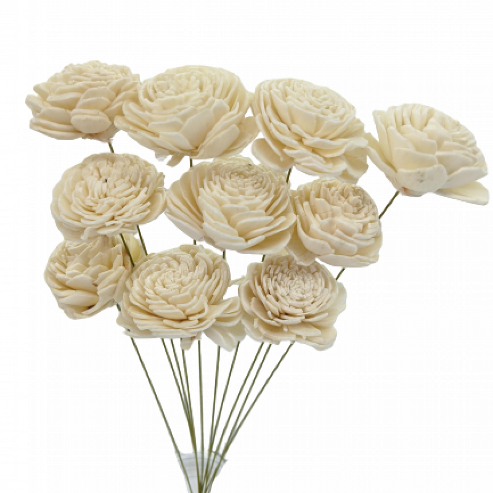 Sola Rose Small includes 10 handcrafted flowers, approx. 30cm in length, with a 3.5cm bloom diameter, finished in a clean White tone. Each bloom is shaped from sola wood, offering a soft texture and sculptural profile—ideal for wedding bouquets, gift styling, flatlays, and DIY arrangements.