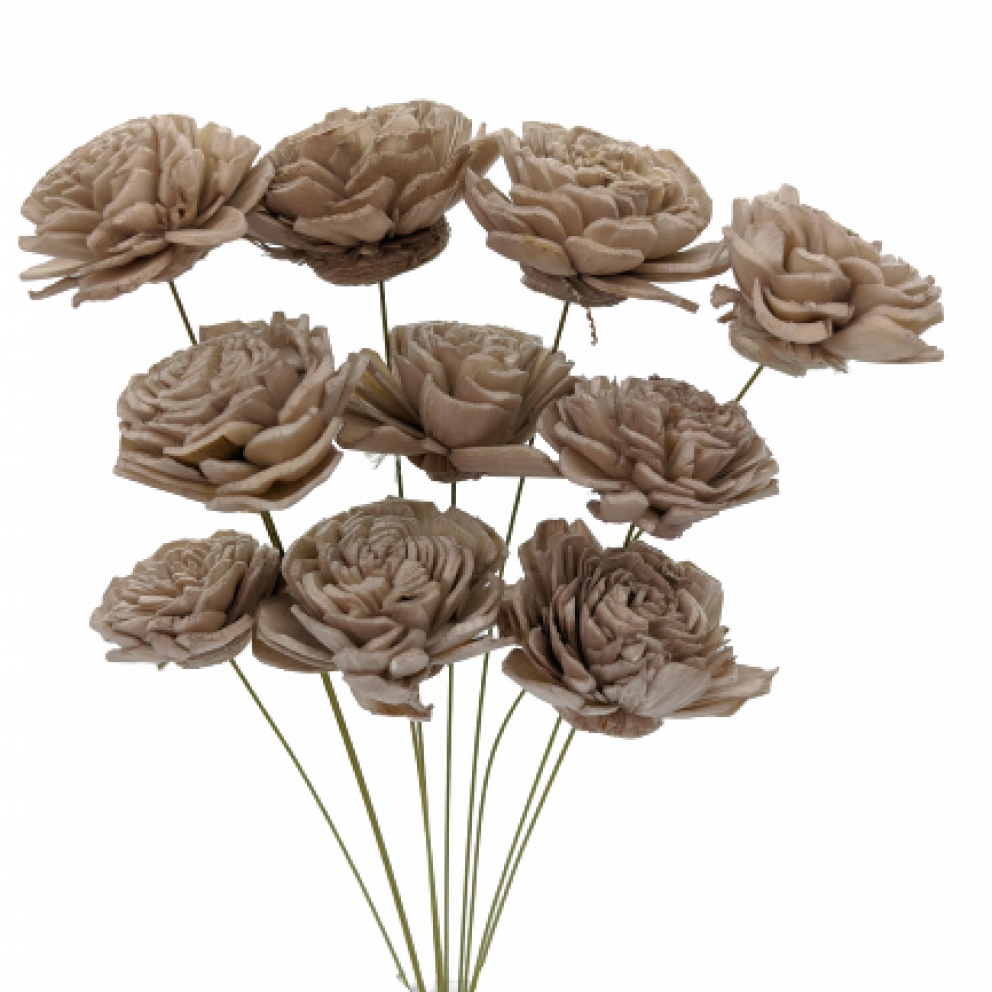 Sola Rose Small includes 10 handcrafted flowers, approx. 30cm in length, with a 3.5cm bloom diameter, finished in a soft Champagne tone. Each bloom is shaped from sola wood, offering a clean silhouette and natural petal texture—ideal for wedding bouquets, gift styling, flatlays, and DIY arrangements.