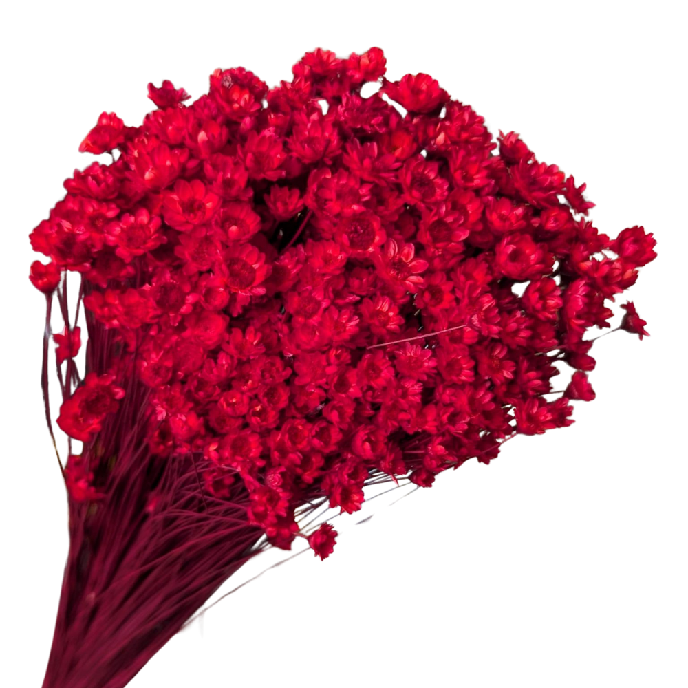 Preserved Spring Star Flower, also known as Glixia, includes a 50g bunch of fine stems, approx. 40–50cm in length, in a bold Red tone. Each bunch contains dozens of delicate, star-shaped blooms with a crisp, papery texture—ideal for posy bouquets, gift styling, DIY wedding florals, and floral kits.