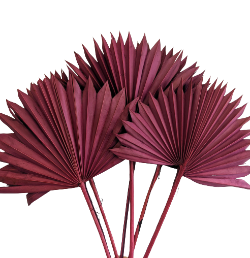Dried Palm Sun, 6 stems, 60cm, Burgundy